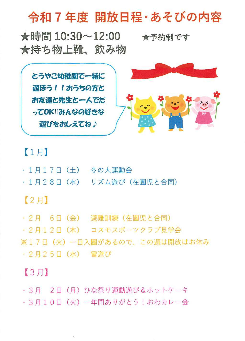 とうやこ幼稚園の幼稚園開放は・・・